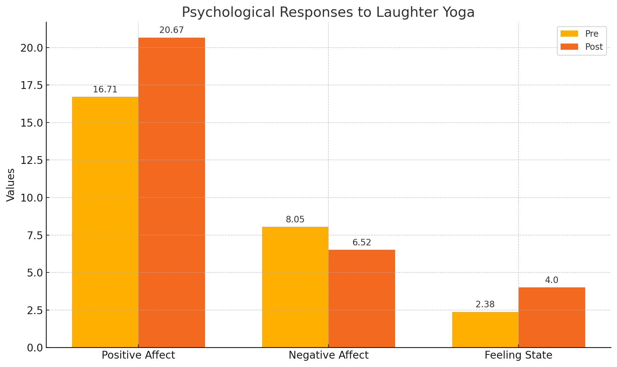 Decreased negative affect, further supporting the mood-enhancing benefits of engaging in Laughter Yoga.